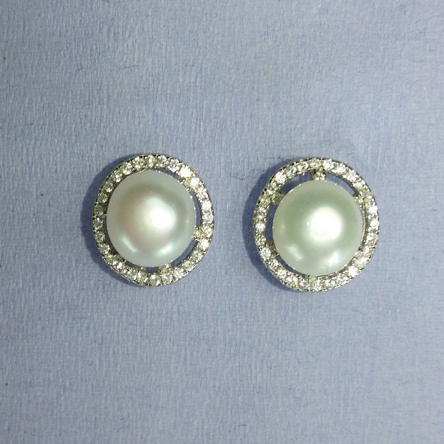 Brinco prata banho ródio com pérola água doce com círculo em zircônias.Medidas: 1 cm de diâmetro.(Obs: Todas as medidas são aproximadas e baseadas nas extremidades maiores do produto). " Veja também na categoria COLARES, o colar que faz conjunto com este par de brinco ". FICAM LINDOS !!!
